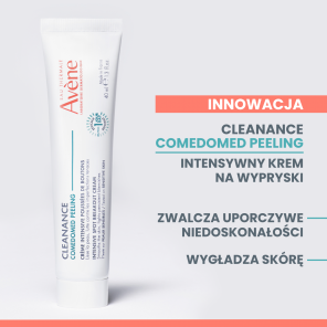 AVENE Cleanance Comedomed Peeling działa na wszystkie widoczne niedoskonałości skóry skłonnej do trądziku dzięki unikalnej i niezwykle skutecznej formule łączącej składniki aktywne: