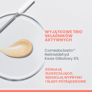 Wzmacniacz Retinolu, który wspomaga redukcję wyprysków oraz śladów potrądzikowych. To opatentowane* połączenie dwóch składników: Retinal (najskuteczniejsza forma witaminy A) oraz Comedoclastin™.
