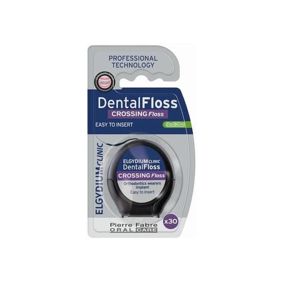 Nić dentystyczna ELGYDIUM Clinic DENTALFLOSS Crossing Floss została specjalnie opracowana z myślą o skutecznym i delikatnym usuwaniu płytki nazębnej. Przeznaczona jest dla młodzieży i dorosłych noszących aparaty ortodontyczne, posiadających korony, mosty i implanty. Nadaje się również do czyszczenia szerokich przestrzeni międzyzębowych. Część prowadząca nici ułatwia użycie (szczególnie w okolicach aparatów ortodontycznych), a chłonna część bawełniana rozszerza się lub kurczy, aby dostosować się do przestrzeni o różnej wielkości.