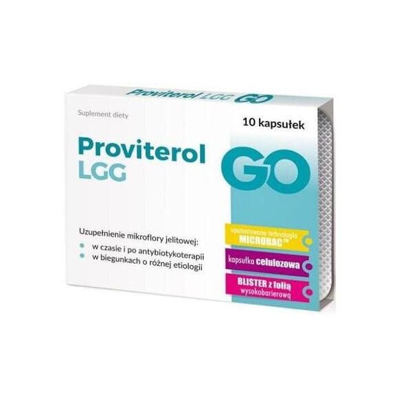 Proviterol LGG GO jest produktem w postaci kapsułek zawierającym żywe kultury bakterii szczepu Lactobacillus rhamnosus GG w formie mikrokapsułkowanej (technologia MICROBAC) charakteryzującej się 5-krotnie większą przeżywalnością bakterii w porównaniu z formą nieotoczkowaną.