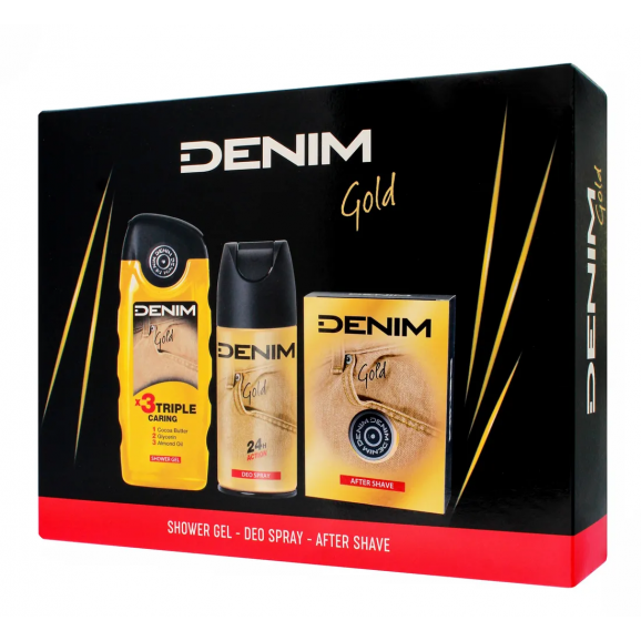 - Nazwa produktu: Denim Gold Zestaw żel pod prysznic, deo, płyn po goleniu