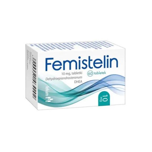Substancją czynną leku Femistelin jest dehydroepiandrosteron (DHEA), który jest hormonem steroidowym wytwarzanym w nadnerczach i uwalnianym do krwi. W różnych tkankach DHEA ulega przemianie do hormonów płciowych: estrogenów u kobiet i androgenów u mężczyzn. Jego ilość w organizmie zmniejsza się w trakcie starzenia. Najwyższe stężenie występuje między 20. a 30. rokiem życia, a po 30. roku zmniejsza się ono stopniowo.