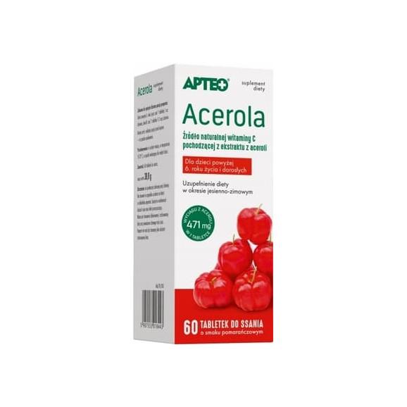 Apteo Acerola, smak pomarańczowy, pastylki do ssania, 60 szt.