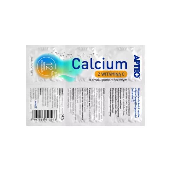 Apteo Calcium z witaminą C, smak pomarańczowy, tabletki musujące, 12 szt.