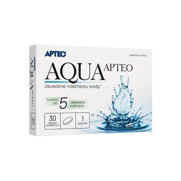 Aqua Apteo to suplement diety zawierający naturalne składniki wspomagające eliminację wody z organizmu oraz detoksykację. Produkt został tak skomponowany, aby wspomagać proces usuwania wody oraz proces redukcji i kontroli masy ciała jak również zwalczania cellulitu.