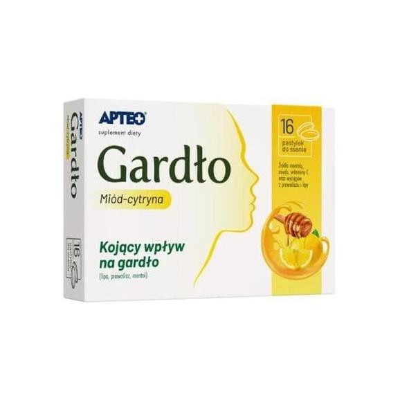 Apteo Gardło Miód-cytryna, pastylki do ssania, 16 szt.