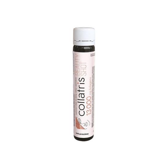 Collatris Beauty Shot to suplement diety w płynie o smaku porzeczki, polecany szczególnie osobom dorosłym po 30 roku życia, zwłaszcza kobietom, w celu uzupełniania codziennej diety w składniki pomagające zachować zdrowy stan skóry, włosów i paznokci. Zawiera starannie dobraną kompozycję: