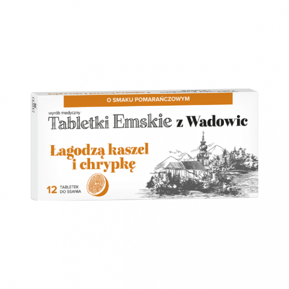 Tabletki Emskie z Wadowic, tabletki do ssania, smak pomarańczowy, 12 szt
