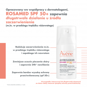 Avene Eau Thermale Antirougeurs Rosamed, koncentrat nawilżająco-ochronny, SPF 50+, 30 ml