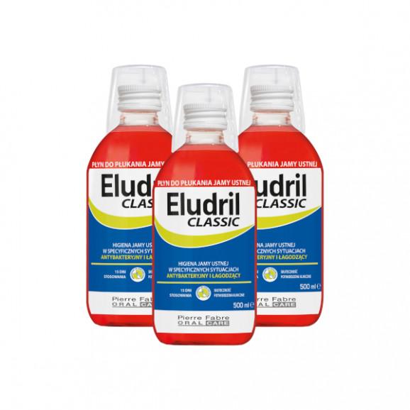3x Eludril CLASSIC, oczyszczający i łagodzący płyn do płukania jamy ustnej, 500 ml