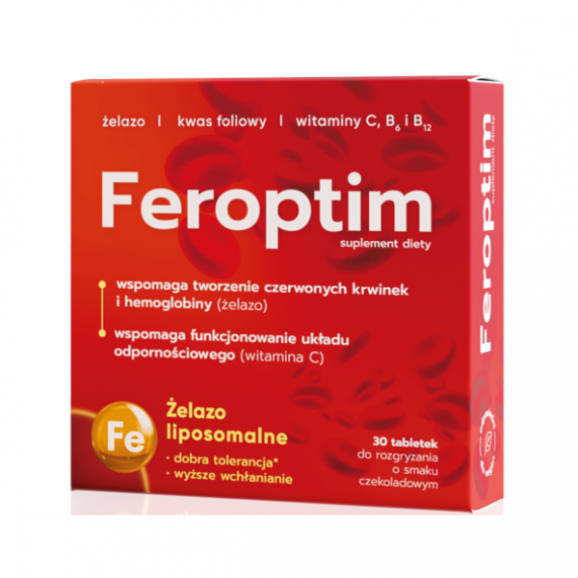 Feroptim, dzięki liposomalnej formie żelazo posiada doskonałą stabilność i wysoką wchłanialność oraz nie powoduje skutków żołądkowo-jelitowych, jest dobrze tolerowany przez układ pokarmowy.