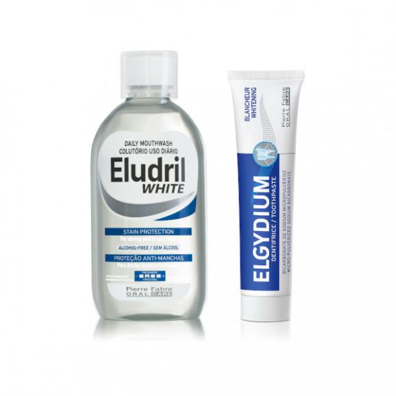 Zestaw ELGYDIUM WYBIELAJĄCA pasta do zębów 75ml + Eludril WHITE płyn 500ml