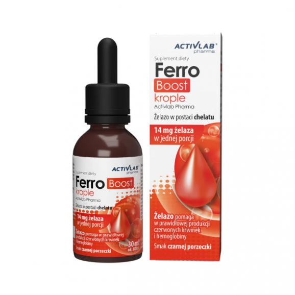 FerroBoost Activlab Pharma to krople zawierające aż 14 mg żelaza w jednej porcji (10 kropli).