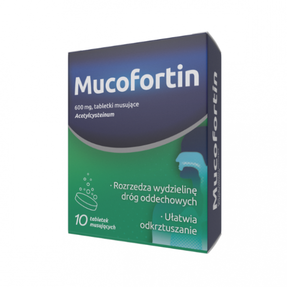 Mucofortin jest lekiem w postaci tabletek musujących, którego substancją czynną jest acetylocysteina. Substancja ta zmniejsza lepkość wydzieliny oskrzelowej i ułatwia odkrztuszanie.