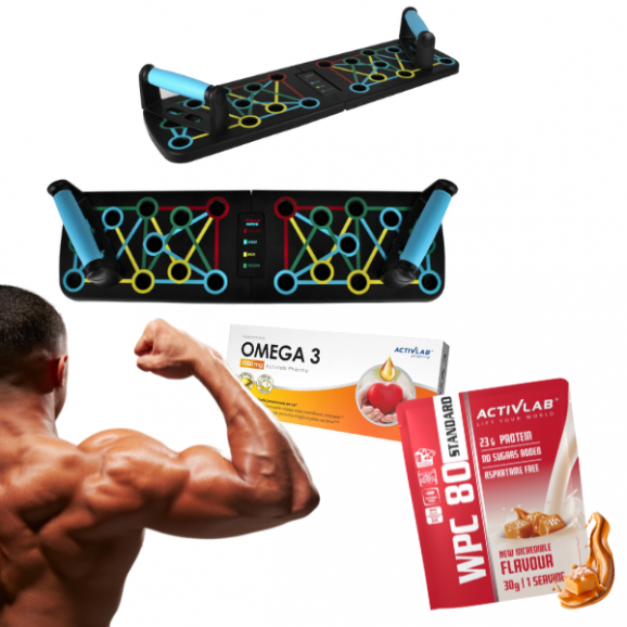 Zestaw Pulsmove Deska do Pompek Białko WPC 80 SŁONY KARMEL 30g i Omega 3 Activlab 1000 mg, 60 kaps.