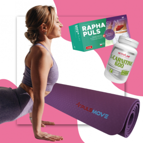 Zestaw MATA 6 MM PULSMOVE DO JOGI FIOLET + TORBA + Activlab L-Carnitine 600, kapsułki, 60 szt. + Raphaslim Puls, 30 tabletek
