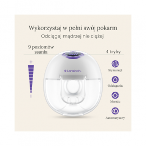 - 4 tryby pracy (stymulacja, odciąganie, masaż, automatyczny) i 9 poziomów ssania