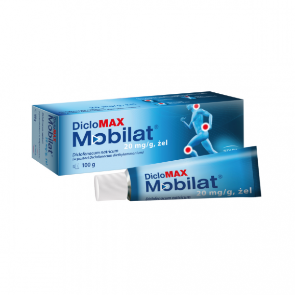 DicloMAX Mobilat żel to lek w postaci bezbarwnego żelu do stosowania miejscowego na skórę. Stosuje się go do krótkotrwałego, objawowego leczenia łagodnego do umiarkowanego bólu w skręceniach, ostrych nadwyrężeniach lub stłuczeniach po tępym urazie.