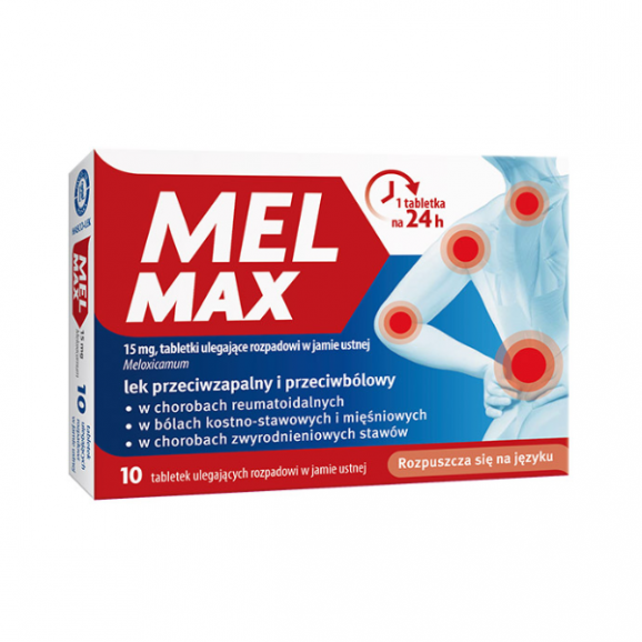 Lek MEL MAX zawiera substancję czynną meloksykam. Meloksykam należy do grupy tak zwanych niesteroidowych leków przeciwzapalnych (NLPZ), które są stosowane w celu zmniejszenia stanu zapalnego i bólu stawów oraz mięśni.