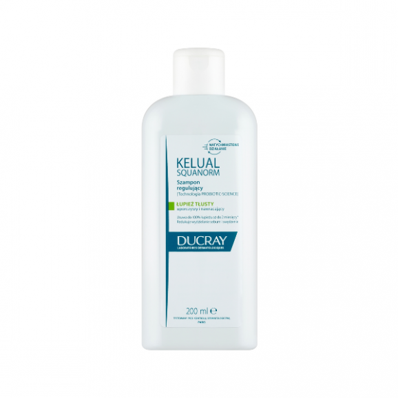 Szampon przeciwłupieżowy Ducray Kelual Squanorm pomaga trwale zredukować łupież tłusty, przywraca równowagę mikrobiomu skóry głowy i zapewnia skuteczne oczczyszczenie. Jest przeznaczony zarówno dla nastolatków w okresie dojrzewania, jak i dla dorosłych, którzy borykają się z łupieżem oraz przetłuszczającą się skórą głowy. Zawarte w formule szamponu składniki aktywne mają właściwości łagodzące, koją uczucie swędzenia oraz podrażnienia. Ducray Squanorm poza działaniem przeciwłupieżowym, skutecznie reguluje nadmierne wydzielanie sebum i przywraca komfort codzienności.