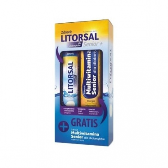 Zdrovit Litorsal Senior+ dla diabetyków, tabletki musujące, 20 szt. + Multiwitamina Senior dla diabetyków, tabletki musujące