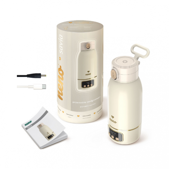 Neno Savia to przenośny, bezprzewodowy podgrzewacz o pojemności 500 ml, który idealnie sprawdzi się podczas codziennych wyjść i w podróży. Błyskawicznie podgrzewa pokarm mamy lub wodę na mleko modyfikowane – aby pogrzać 150 ml płynu w temperaturze pokojowej około 20-25°C do 40°C, potrzebuje jedynie 3 minuty.