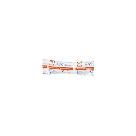 Opaska dziana podtrzymująca 4 m x 5 cm wykonana jest z przędzy z włókien wiskozowych w postaci taśmy dzianej. Oddychająca struktura zapewnia dopływ tlenu do skóry. Jest hipoalergiczna, wytrzymała i nie podrażnia skóry.