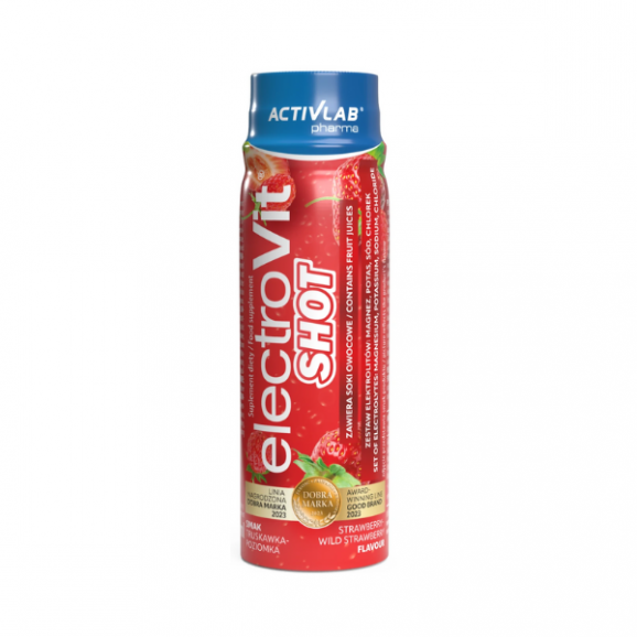 Activlab Pharma ElectroVit shot truskawka-poziomka to napój zawierający magnez, potas, sód, chlorek oraz glukozę. Preparat może stanowić codzienne uzupełnienie diety osób dorosłych w cenne składniki aktywne. Preparat sprawdzi się w szczególności w okresie zwiększonego pragnienia, lub zwiększonej utraty płynów spowodowanej intensywną aktywnością fizyczną lub upałami.