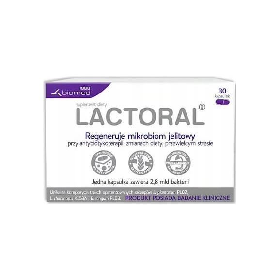 Lactoral® to suplement diety odpowiedni do stosowania jako uzupełnienie diety osób dorosłych i dzieci powyżej 3 roku życia, zawiera unikalną, opatentowaną kompozycję kultur bakterii. Każda kapsułka zawiera 2,8 miliarda bakterii z rodzaju Lactobacillus i Bifidobacterium.
