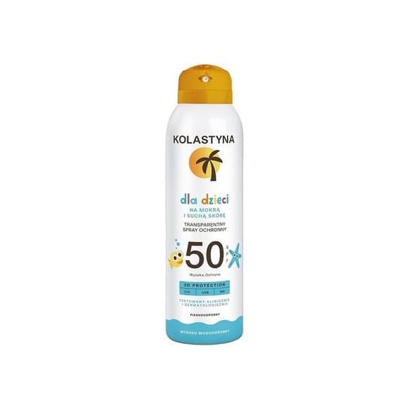 Kolastyna dla dzieci na mokrą i suchą skórę, spray ochronny do opalania, SPF 50, 150 ml