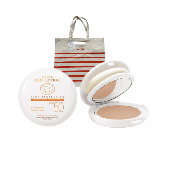 Zestaw Avene Sun, ochronny kompakt mineralny piaskowy, skóra nadwrażliwa, SPF 50, 10 g + torba na zakupy