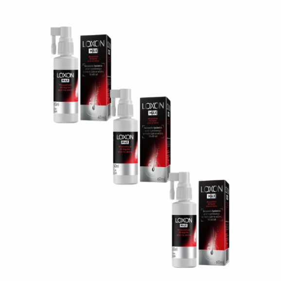 Płyn przeciw wypadaniu włosów Loxon MAX 5% 50mg/ml 3 x 60 ml na skórę