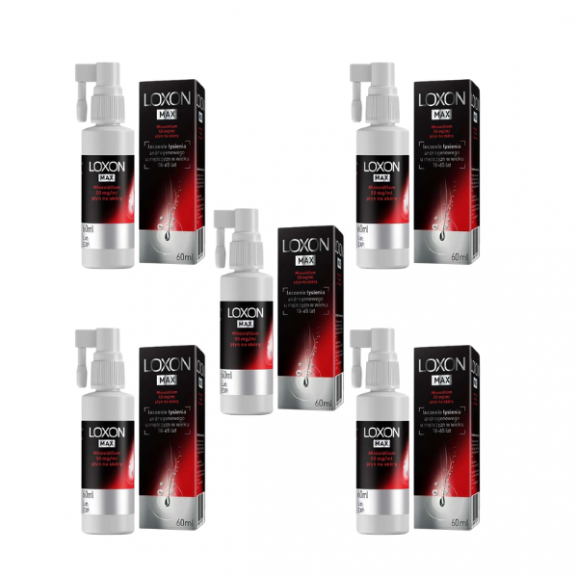 Płyn przeciw wypadaniu włosów Loxon MAX 5% 50mg/ml 5 x 60 ml na skórę