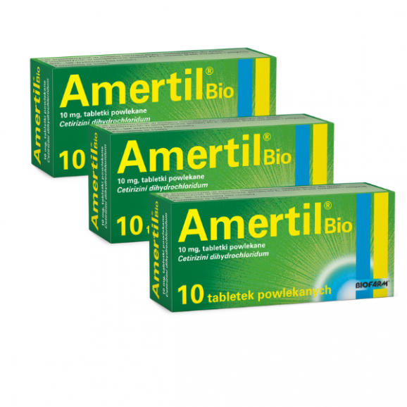 Amertil Bio to lek przeciwalergiczny w postaci tabletek powlekanych, zawierający w składzie cetyryzynę w formie dichlorowodorku.