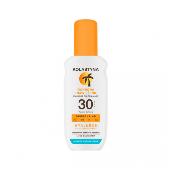 Emulsja do opalania w sprayu SPF 30 Kolastyna dzięki formule 4D zapewnia ochronę przed czterema głównymi rodzajami promieniowania: UVA, UVB, VL i IRA, odpowiedzialnymi za uszkodzenia skóry.