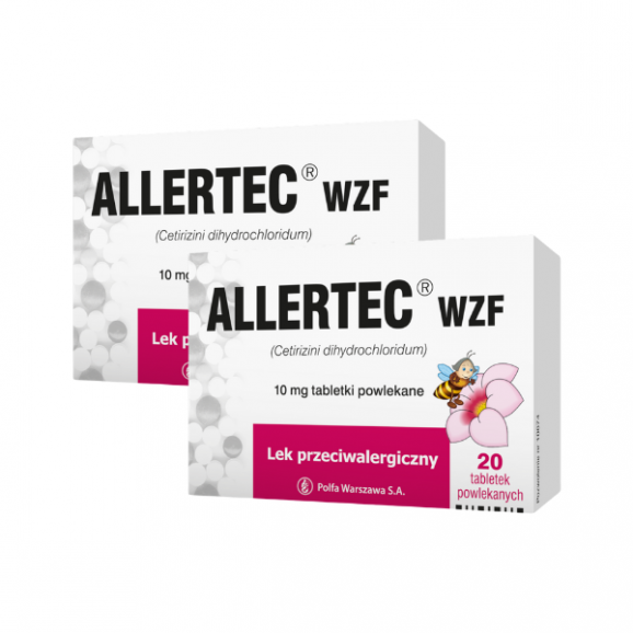 Allertec WZF 10 mg to lek przeciwalergiczny zawierający jako substancję czynną cetyryzyny dichlorowodorek (cetyrtyzynę).