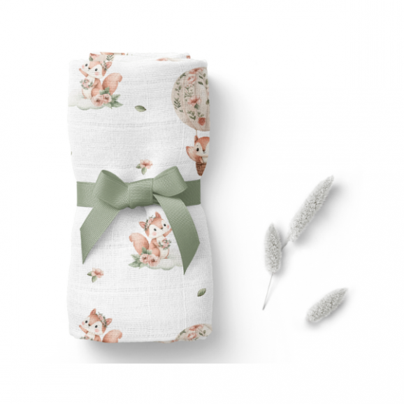 Pieluszka bambusowa „Wiewiórki” o wymiarach 110×110 cm to wielofunkcyjny must-have w codziennej opiece nad niemowlęciem.