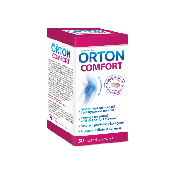 Zadbaj o swoje stawy w nowoczesny i wygodny sposób dzięki Orton Comfort – suplementowi diety w postaci smacznych tabletek do ssania o malinowym aromacie, stworzonemu z myślą o osobach aktywnych, seniorach oraz wszystkich, którzy chcą wspierać kondycję stawów i układu ruchu każdego dnia.