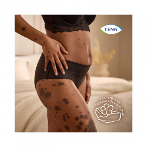 Dyskretne, eleganckie i ochronne – Tena Silhouette Lady Pants Plus Black to majtki chłonne w czarnym designie, które łączą wygodę bielizny z trójstopniową ochroną i pielęgnacją Twojej skóry.