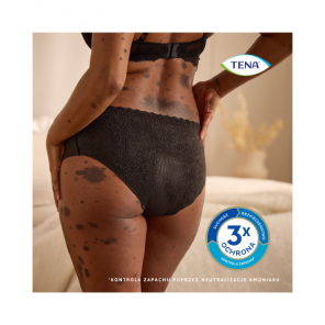Dyskretne, eleganckie i ochronne – Tena Silhouette Lady Pants Plus Black to majtki chłonne w czarnym designie, które łączą wygodę bielizny z trójstopniową ochroną i pielęgnacją Twojej skóry.