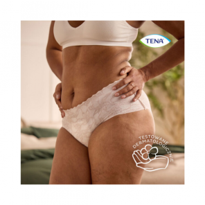 Tena Silhouette Lady Pants Plus White to dyskretne majtki chłonne, które łączą stylową bieliznę z potrójną ochroną – suchością, neutralizacją zapachu i komfortem skóry.