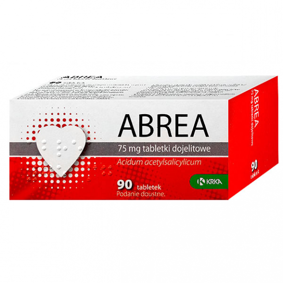 Abrea, 75 mg tabletki dojelitowe to lek stosowany profilaktycznie w celu zmniejszenia ryzyka powstawania zakrzepów.