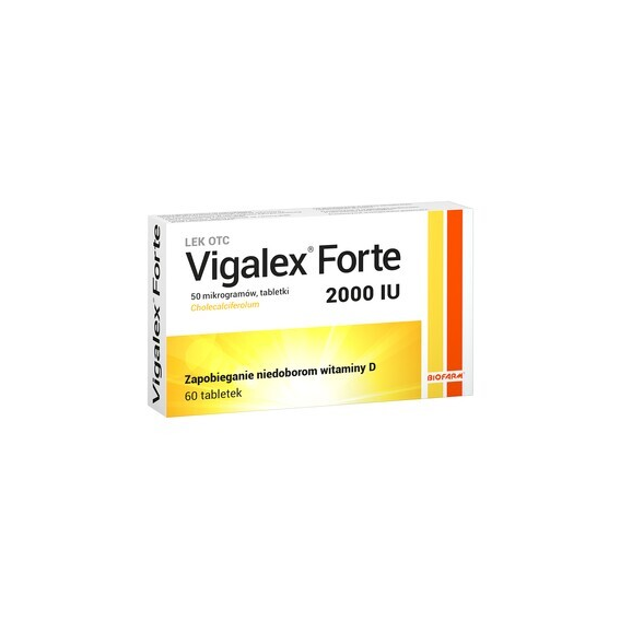 Lek Vigalex Forte w formie tabletek zawiera witaminę D3 (Cholecalciferolum). Przeznaczony jest do stosowania u osób dorosłych oraz dzieci powyżej 6 roku życia w celu zapobiegania jej niedoborom witaminy D.