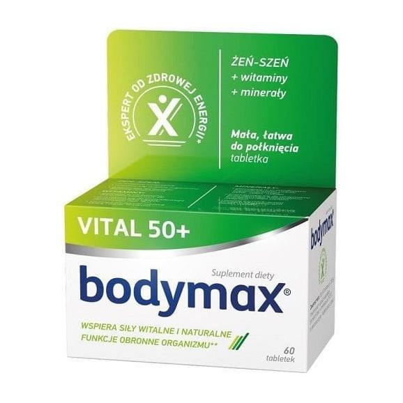 Bodymax Vital 50+ to wieloskładnikowy suplement diety w postaci tabletek, którego formuła została opracowana z myślą o uzupełnieniu diety osób po 50 roku życia. Prepart łączy w składzie moc 11 witamin i 6 składników mineralnych uzupełnionych o standaryzowany ekstrakt z korzenia żeń-szenia.
