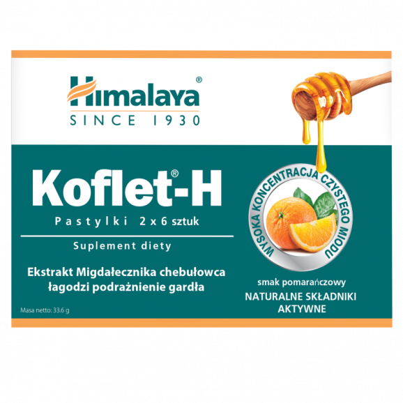 [31.10.2025] Himalaya Koflet-H, pastylki do ssania, smak pomarańczowy, 12 szt.