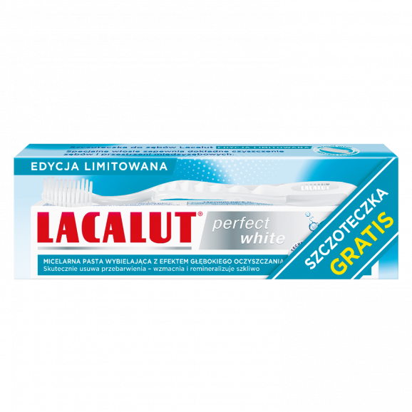 - Nazwa produktu: Lacalut Perfect White, pasta do zębów + szczoteczka, zestaw