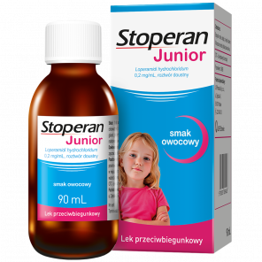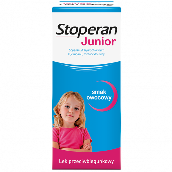 Stoperan Junior to lek przeciwbiegunkowy w postaci roztworu doustnego, zawierającego 0,2 mg loperamidu chlorowodorku.