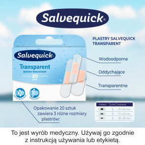 - Nazwa produktu: Salvequick Transparent plastry opatrunkowe.