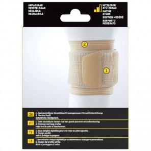 Rozmiar uniwersalny (14cm-21cm) sprawia, że opaska pasuje zarówno na lewy, jak i prawy nadgarstek. Opaska łączy skuteczność dzięki podwójnemu paskowi regulująco-podtrzymującemu i estetykę z beżowym kolorem zapewniającym dyskretność.