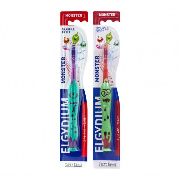 Elgydium Kids, szczoteczka do zębów dla dzieci, Monster, 2-6 lat, 2 szt.